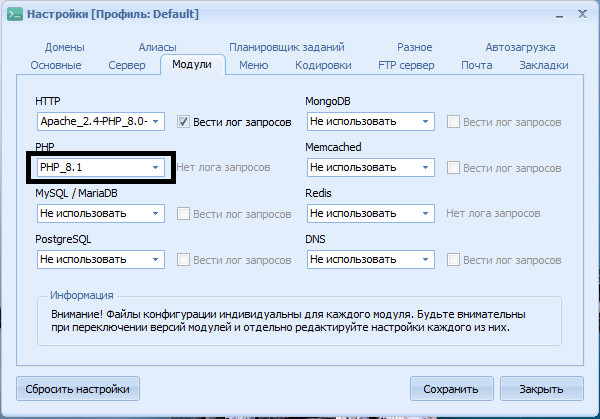 Для работы сайтов ДуДу2 используется ПО OpenServerPanel 5.4.3, но в данном пакете нет последних версий PHP (8.2, 8.3, 8.4). Их можно добавить вручную