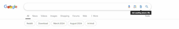 Google представила новую функцию, которая позволяет пользователям загружать файлы с локального компьютера и получать ответы на вопросы по содержимому этих файлов. Эта функция была обнаружена в поисковой строке Google и позволяет пользователям загружать файлы, после чего поисковая система предлагает "спросить о файле что угодно" прямо в поисковой строке.