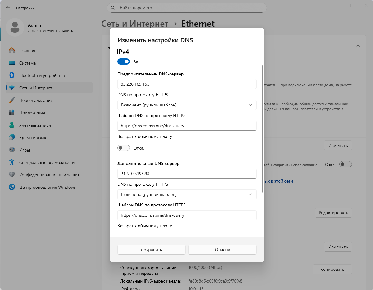 DNS сервер IPv4: