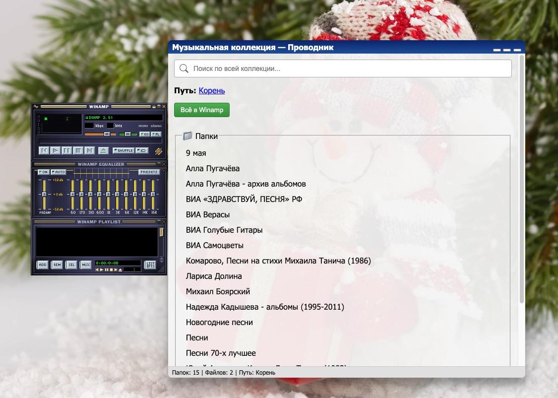 Плеер сайта можно использовать для прослушивания треков с пк, для этого необходимо перетащить свои треки в окно "Winamp playlist"